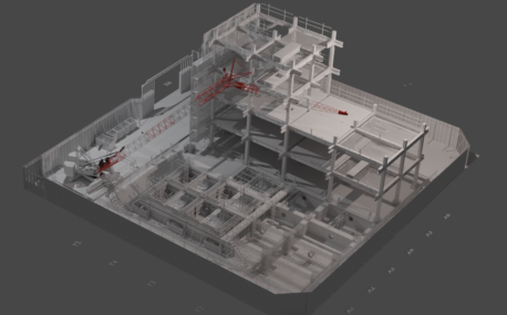現場概要書・工程表・各種検討会等の資料にはレンダリングされた画像を添付するのもお薦めです。まるで模型を撮影したかのようにリアルに現場を再現でき、着色もできます。