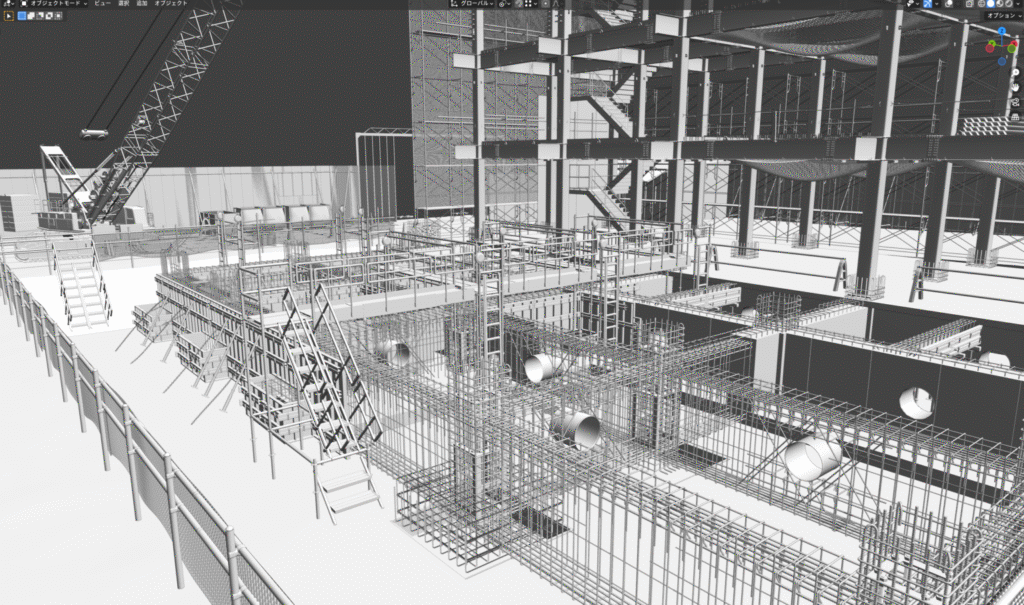 「Blender」で作成した仮想基礎躯体工事モデル